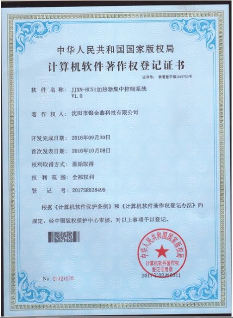 軟件著作權(quán)-錦金鑫加熱器控制軟件V1.0